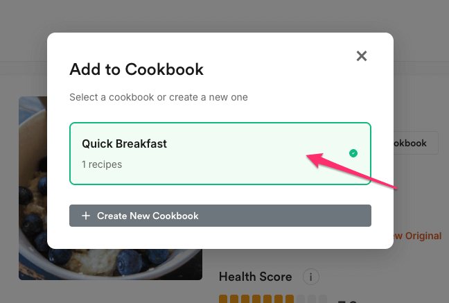 Need a new collection on the fly? Click Create New Cookbook in the same pop-up, name it, then add the recipe.