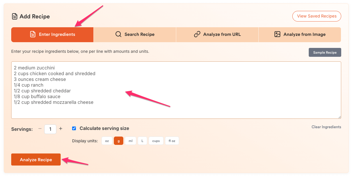 Method 1: Enter Ingredients